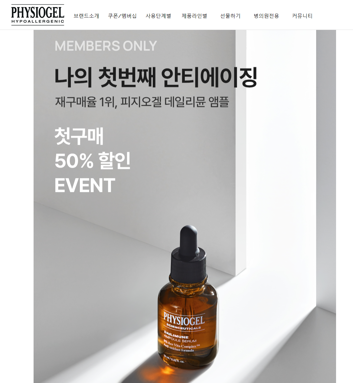 ② 피지오겔 공식홈페이지 가입하여 첫 구매 혜택(50% 할인) 누리기